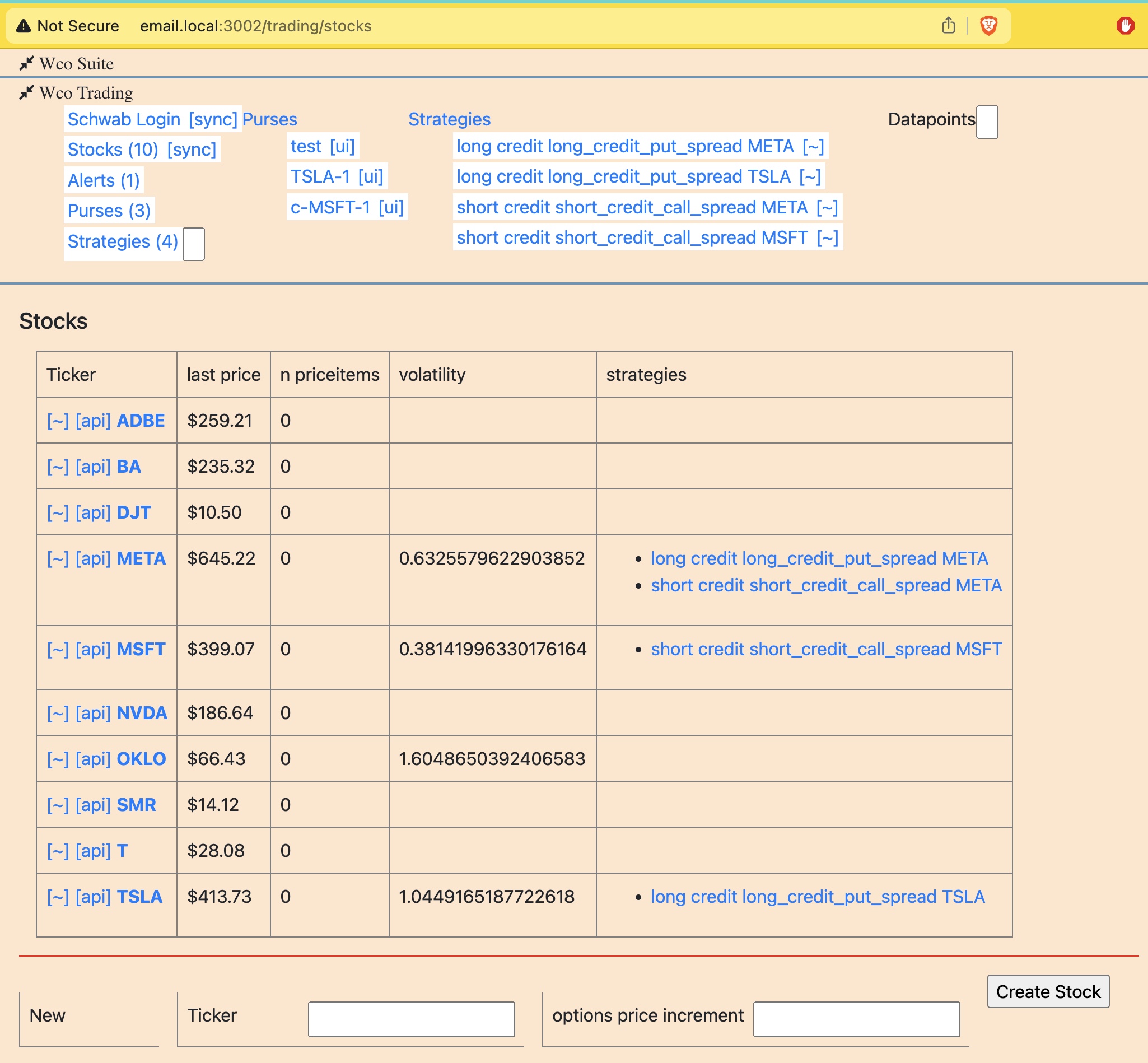 Here I have a list of stocks. There are actions associated with each stock.